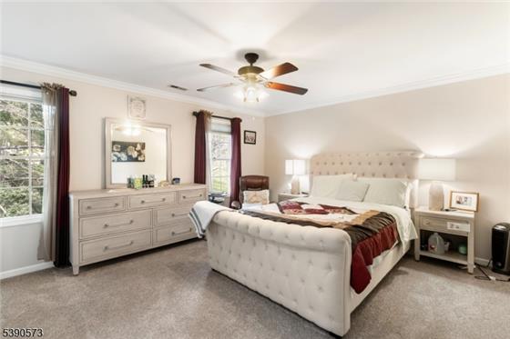 Welcome to 10 Blue Cliff Drive, an elevated and private residence accessed by a secluded uphill approach that enhances privacy. The sloped, wooded backyard offers excellent drainage and low-maintenance outdoor living.This 4,462 sq ft home features 4 bedrooms and 4.5 baths, set on 3.37 private acres in Clinton Township, Hunterdon County. A dramatic two-story staircase and newly painted living areas create a bright and welcoming entry.The main level includes a spacious first-floor bedroom/den with double closets and direct access to a full bath, offering flexibility for guests or a home office.