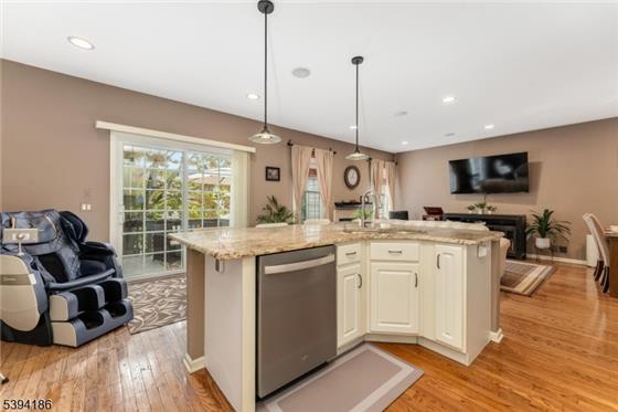 This spacious 2-bedroom, 2.5-bath home offers comfort, style, and convenience throughout. The main level features hardwood floors, recessed lighting, and an open-concept layout that's perfect for both everyday living and entertaining. The kitchen boasts a large center island with granite countertops, ample cabinet space, and easy access to the dining and living areas. Enjoy cozy evenings by the gas fireplace or step outside to take in the scenic surroundings. The home also includes an unfinished walkout basement, offering endless possibilities for additional living space or storage. Upstairs,