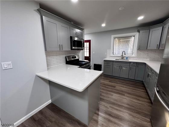 Immaculate ranch home with exceptional indoor & and outdoor living space. Discover refined single-level living in this beautiful three bedroom, one bath ranch, perfectly blending modern elegance with everyday comfort. This home features an entirely updated kitchen showcasing new light-gray cabinetry, premium quartz countertops, and stainless steel appliances, providing a sophisticated culinary space. The interior is enhanced by new laminate flooring throughout and fresh, contemporary paint colors, offering a crisp and inviting ambiance. All bedrooms are generously sized, creating peaceful retr
