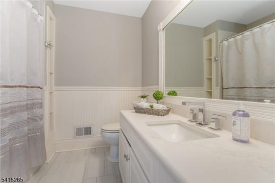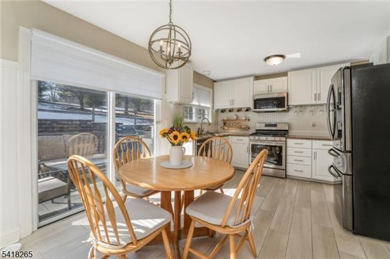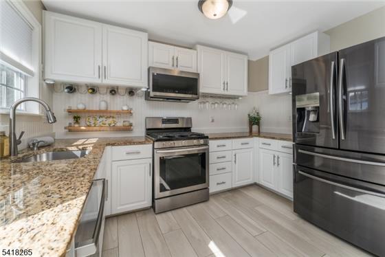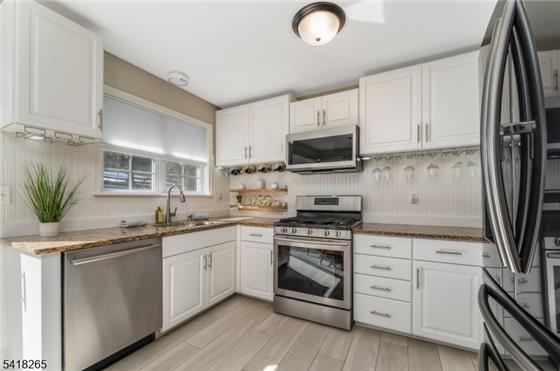 Where thoughtful design and tasteful updates shine across all three finished levels. The main living space features a bright living room with custom built-ins and recessed lighting, flowing seamlessly into a large formal dining room perfect for entertaining. The eat-in kitchen is beautifully appointed with stainless steel appliances, granite countertops, porcelain flooring, glass tile accents, open shelving, and sliding doors that lead out to the deck.The main level also includes a stylishly updated powder room and convenient access to the one-car garage.Upstairs, the oversized primary suite i