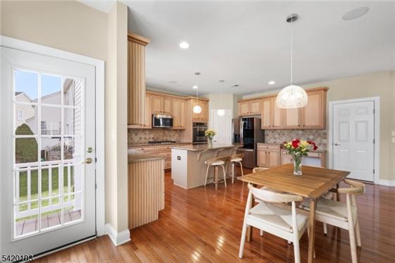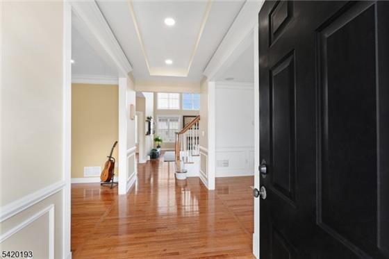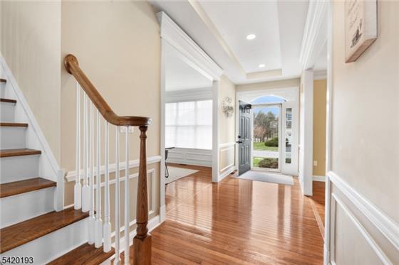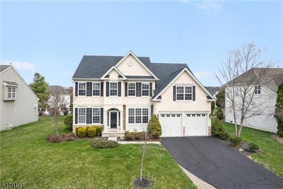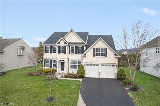 Welcome home to this lovely 5 Bedroom Bainbridge II Model, loc in the Water's Edge community. It's near Spruce Run and Round Valley Reservoir. Spacious grand Foyer welcomes you into the home, featuring tray ceilings & lots of natural light. The first floor is appointed w stunning architectural molding, hardwood floors that flow seamlessly throughout the space, and a formal Living rm & a private Study. The Dining rm offers plenty of space for large gatherings. The Great rm is 2 stories w a full wall of windows, a gas fireplace & open to the updated Kitchen. The Kitchen boasts high-end ss applia