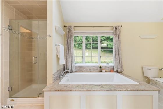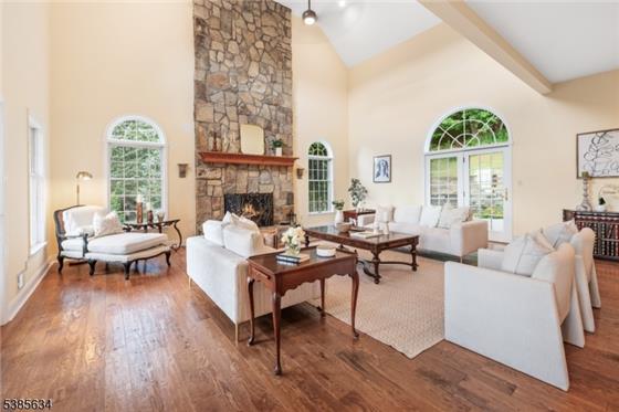 Nestled at the end of a quiet cul-de-sac and set on nearly 5 private acres backing to Round Valley Reservoir, this stately 4-bedroom, 3.5-bath Colonial offers timeless elegance and natural beauty. A tree-lined driveway leads to a welcoming front porch with scenic views and nearly 5,151 sq ft of living space. The kitchen features a center island, granite countertops, stainless steel appliances, and tile backsplash, flowing into the breakfast and sunrooms with access to a new paver patio and professionally landscaped yard. The Great Room impresses with soaring ceilings and a new (2025) gas firep