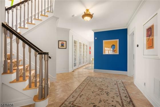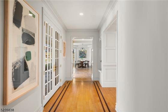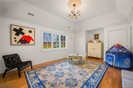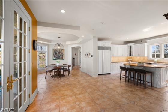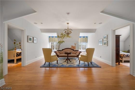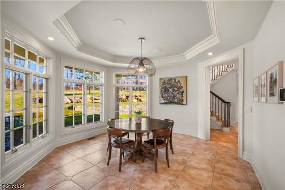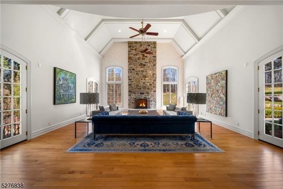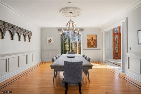 In the charming hamlet of Mountainville, this sophisticated country manor home offers refined living on 7+ beautifully landscaped acres. The exterior showcases a striking blend of stone, stucco, and cedar siding, accented by a slate roof and stone chimneys. A bluestone walkway leads to the entry, where you are welcomed into the spacious and well-appointed interior. Inside the stunning residence, recent modern updates are enhanced by extensive custom architectural mouldings and millwork throughout. The centerpiece of the residence is the gourmet kitchen and expansive two-story Great Room, featu