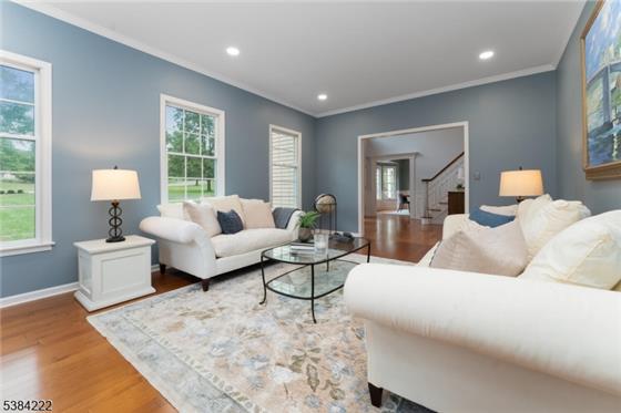 Welcome to 25 Chalfonte Dr. A beautiful 4BR colonial set on 1.5 professionally landscaped acres in highly sought after Pacesetter neighborhood of Clinton Township. The setting is private as we sit quietly surrounded by preserved land & are the last home at the end of Chalfonte Dr! Inside find hardwood floors throughout, soaring ceilings, tons of natural light & the bonus of public water & natural gas. The updated kitchen will wow you with a large center island, gorgeous quartz counters, coffee bar & sliders to an expansive deck overlooking the pool & beautiful grounds. Adjacent, the great room