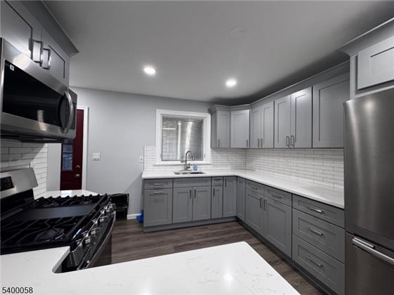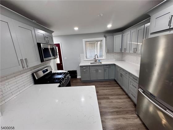 Immaculate ranch home with exceptional indoor & and outdoor living space. Discover refined single-level living in this beautiful three bedroom, one bath ranch, perfectly blending modern elegance with everyday comfort. This home features an entirely updated kitchen showcasing new light-gray cabinetry, premium quartz countertops, and stainless steel appliances, providing a sophisticated culinary space. The interior is enhanced by new laminate flooring throughout and fresh, contemporary paint colors, offering a crisp and inviting ambiance. All bedrooms are generously sized, creating peaceful retr