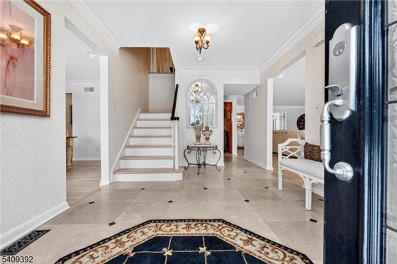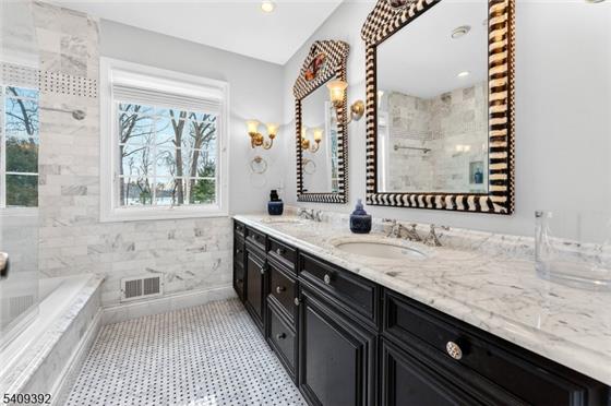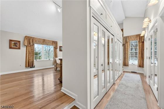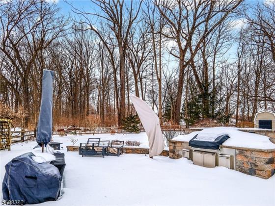 Set on 1.73 private acres backing to Fiddler's Elbow Country Club, one of the area's most desirable golf course communities, this custom Colonial blends timeless craftsmanship with thoughtful updates and resort-style living. Offering four bedrooms, two full and two half baths, the home showcases extensive custom millwork, built-ins, a wet bar, and refined architectural detail throughout. The chef's kitchen features radiant heated travertine floors, high-end custom cabinetry, center island, pantry, Liebherr refrigerator, and instant hot water. The primary suite offers a cathedral ceiling, custo