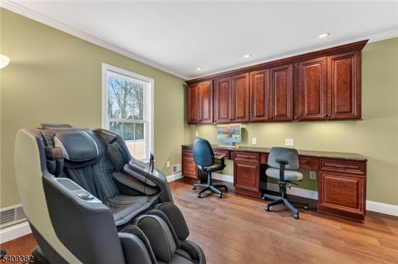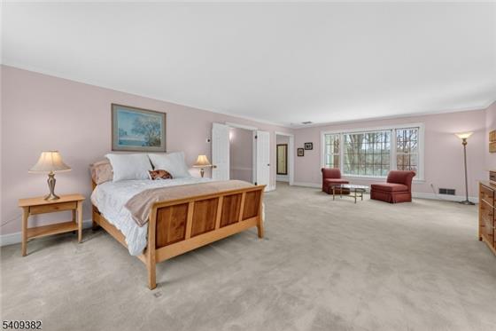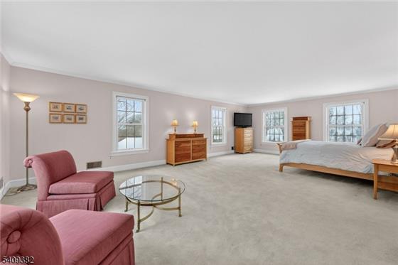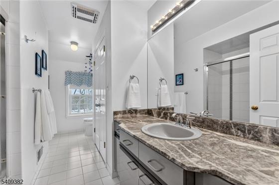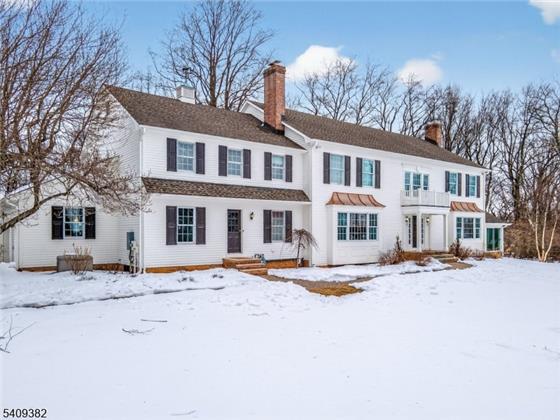 Set at the end of a quiet cul-de-sac in desirable Tewksbury Twp., this stately five-bedroom Colonial offers privacy, space, and timeless design on 6.47 picturesque acres. A dramatic entry foyer welcomes you inside, where beautiful hardwood floors and thoughtfully designed living spaces create an inviting atmosphere for both everyday living and entertaining. Four of the five bedrooms feature ensuite baths, providing comfort and convenience. The spacious primary suite includes a dressing room, two walk-in closets, and a well-appointed ensuite bathroom. A first-floor office with an adjoining full