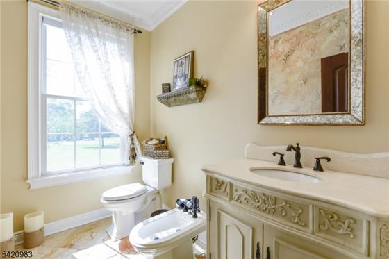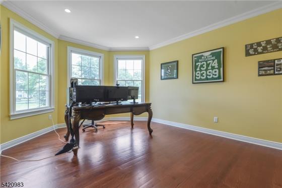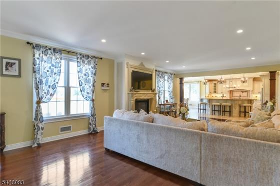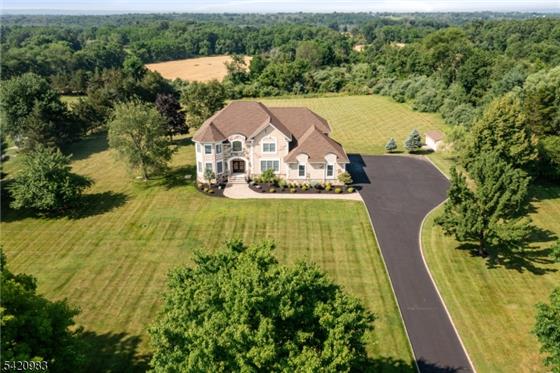 Exceptional custom Colonial built in 2017, offering outstanding value in desirable Readington Township just 53 miles west from NYC. Set on 3 beautifully cleared acres, this home blends elegance, comfort, and quality craftsmanship. Featuring 9-foot ceilings on both the first and second floors, the interior showcases extensive custom trim work, detailed millwork, and 4" select oak hardwood flooring throughout most of the home. The gourmet chef's kitchen is a standout, complete with two oversized islands, custom cabinetry, under-cabinet lighting, high-end stainless steel appliances, a walk-in pa