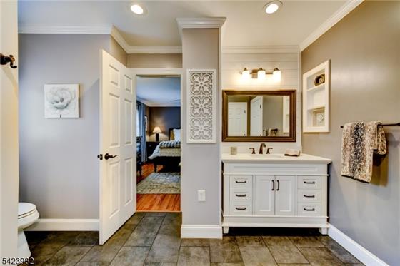 A commanding presence w/ dynamic curb appeal sets the tone, enhanced by professional landscaping & specimen plantings, creating an immediate & lasting impression. The home's striking blend of Hardie board & stone siding further elevates its timeless appeal, seamlessly complementing the exterior design. Inside, every room flows w/ intentional grace, revealing an exceptional floor plan tailored for customized living. An expansive gourmet-inspired Kitchen w/ SS appl., granite tops & seamless connectivity to the main living spaces anchors the open concept layout. Crisply renovated bathrooms add a